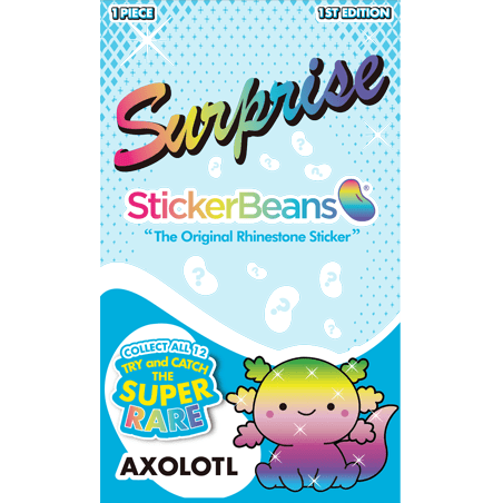 Our Surprise StickerBeans are the MOST exclusive collection we have done to date (and the MOST fun)! There are 12 designs in total, each produced in small and different quantities, with our rainbow “axolotl” being most rare with only a small number made in total. This 1st edition collection will be available until it sells out so grab them while you can. Which sticker(s) will you get??