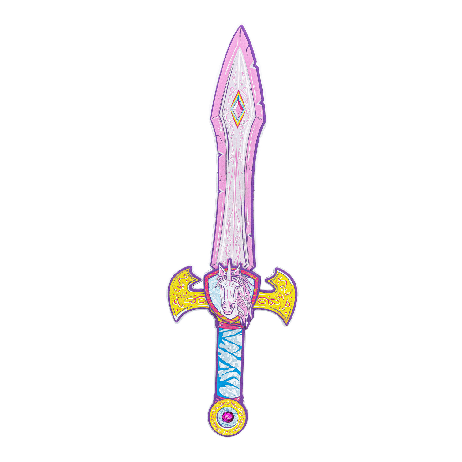The Enchanted Purple Unicorn Foam Sword is a fun and interactive toy for kids of all ages. This foam sword is very easy to use and can be played with by both kids and adults. It is made of a lightweight EVA foam and is purple, yellow and blue in color. It has a long handle with a unicorn head on the base. The Enchanted Purple Unicorn Sword is a toy a perfect toy for unicorn lovers of all ages!