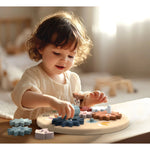 Get your little one's curiosity turning with the Gear Toy. A colorful and interactive wooden toy that combines fun with foundational learning. Designed for children 18 months and older, this toy encourages problem-solving, hand-eye coordination, and fine motor development as kids explore how gears spin and interact. Includes 3pcs animal heads, 3pcs big gears, 4 pcs small gears.