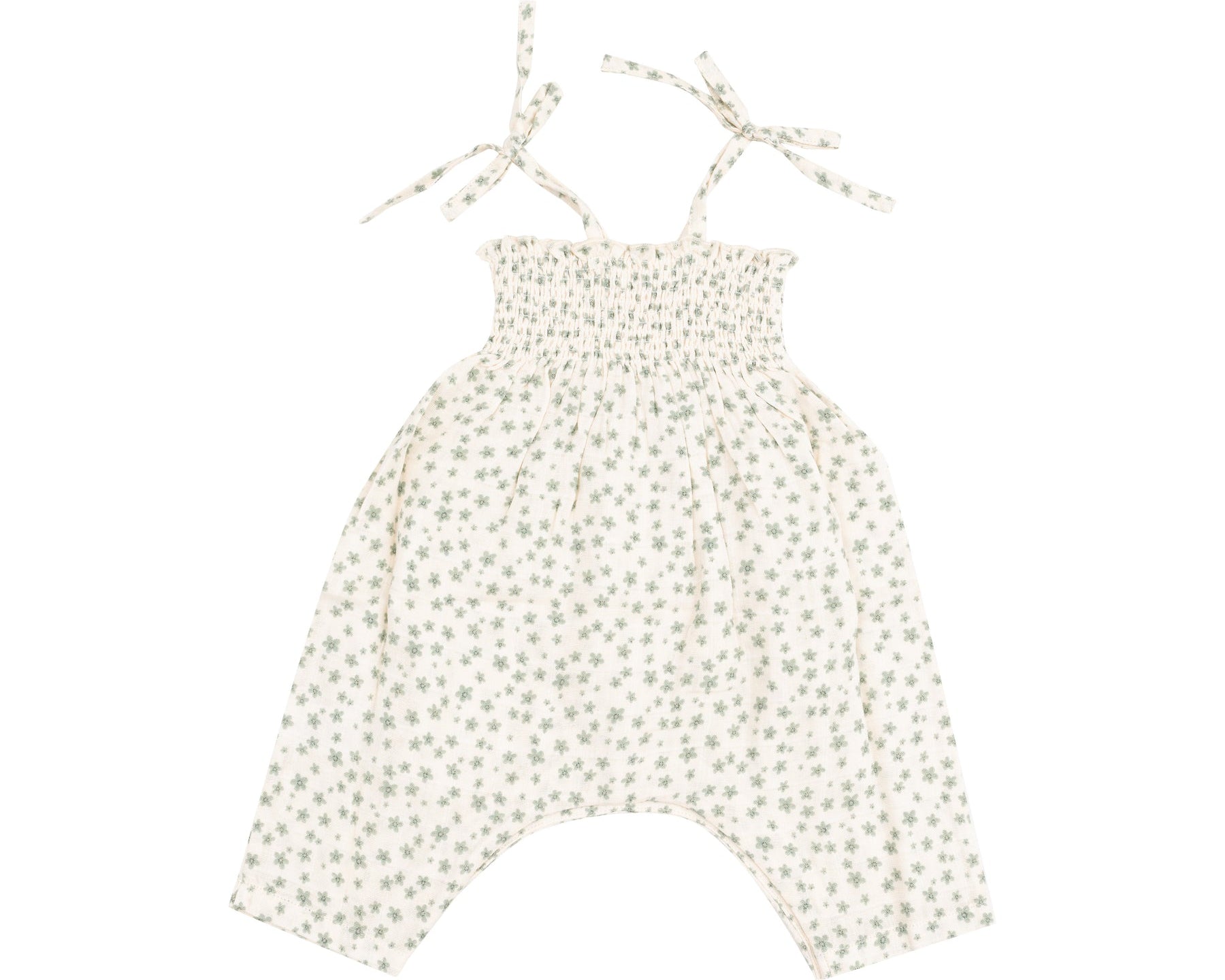Angel Dear Jadeite Simple Floral Tie Strap Smocked Romper