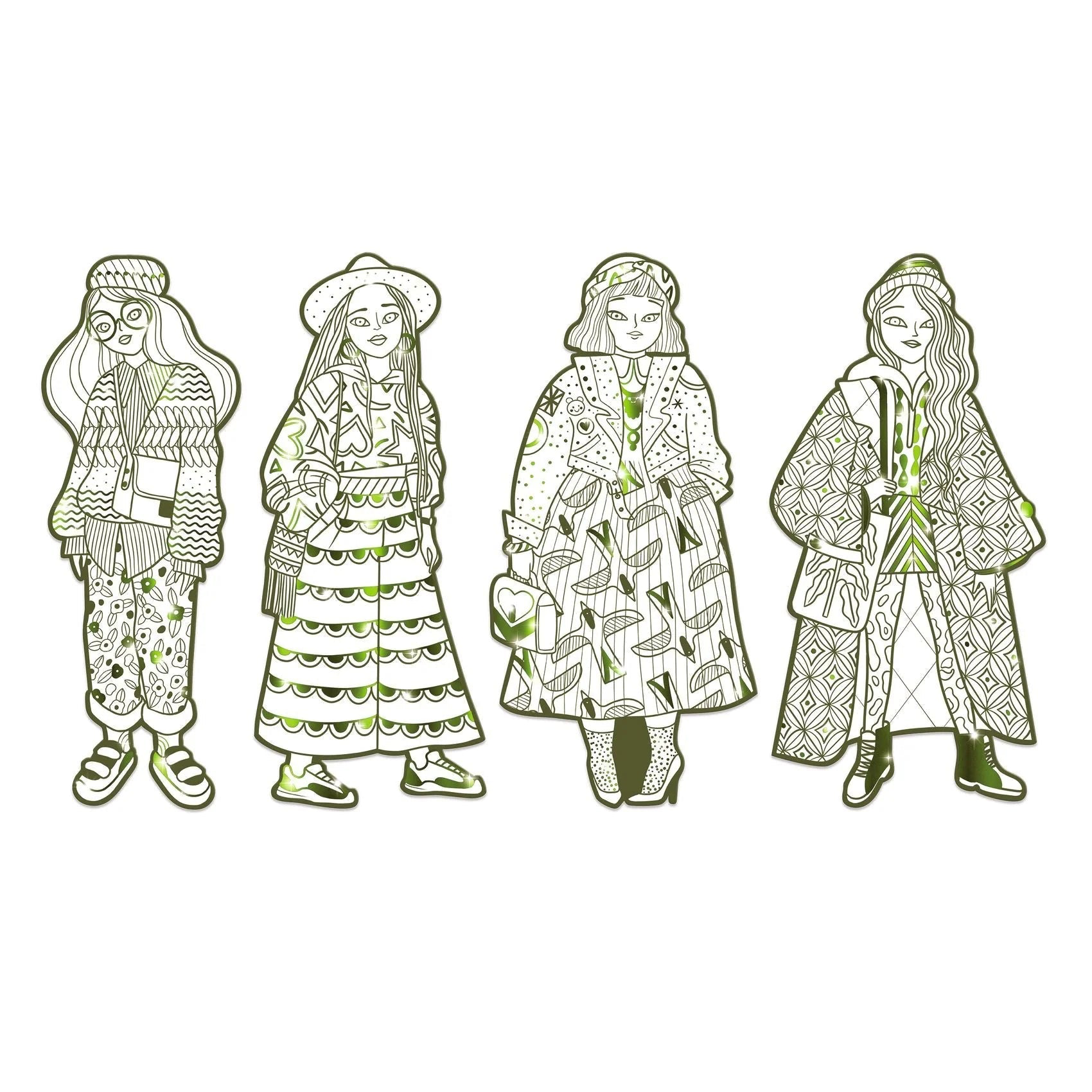 Unleash creativity with Djeco's fashion coloring sheets! These vibrant designs feature metallic accents on thick card stock for long-lasting art. Perfect for young fashion enthusiasts ages 6-10, each sheet showcases colorful outfits waiting for personal touches. Express unique style while developing artistic skills with these premium quality coloring pages.