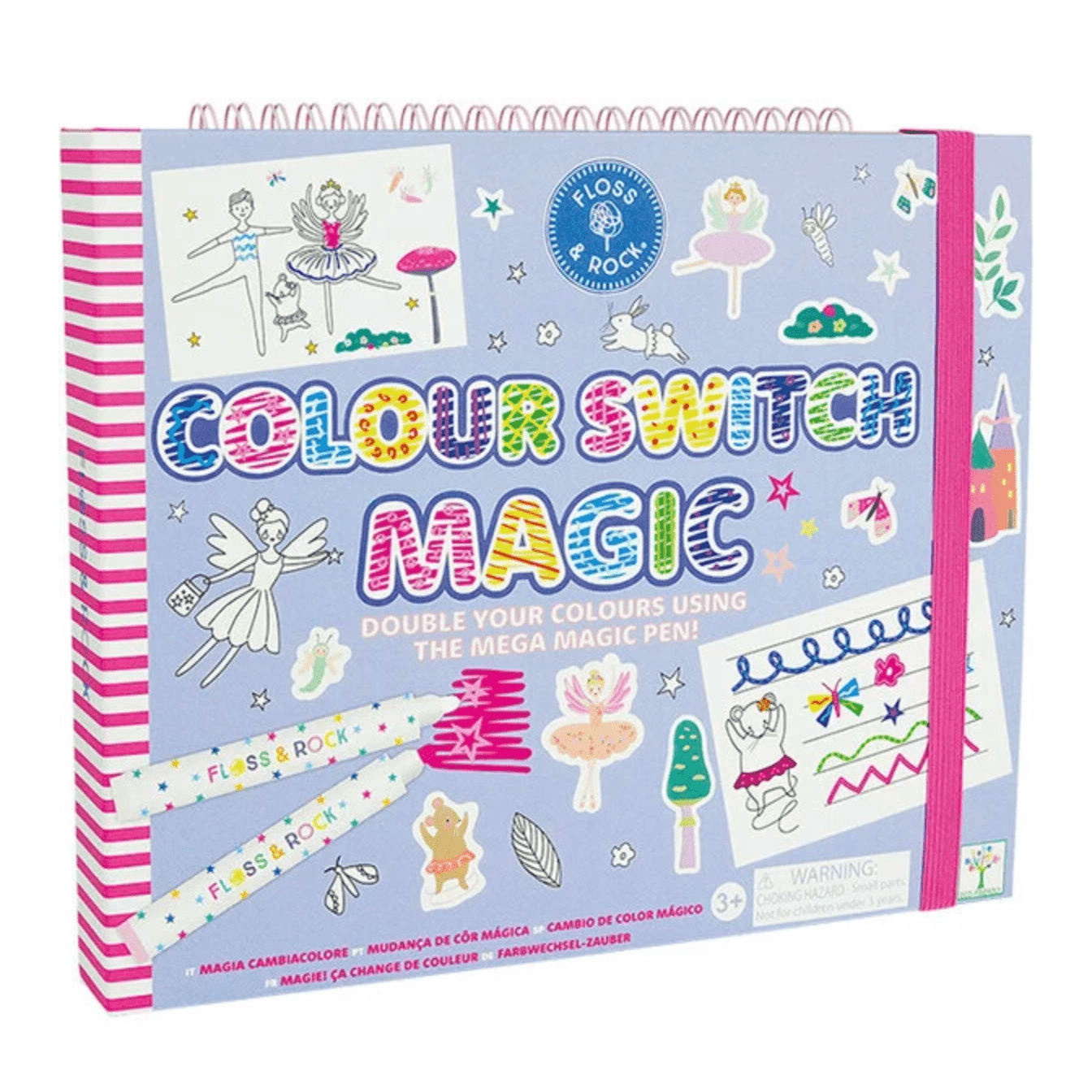 Double the creativity with Colour Switch Magic! The magic white pen changes 6 colours into 12, providing endless fun designing patterns and more. This ring-bound pad includes 10 doodle pages, 5 colour-in sheets, 5 lined pages for writing, 6 colour switch pens, 1 magic pen, and 2 sticker pages. Write messages with colourful, striped letters using the magic pen, then explore your imagination on the doodle pages. The colouring pages help promote focus and patience, while the stickers add extra flair. With an elastic closure to keep everything tidy, it’s ideal for kids 3 and up to boost creativity and concentration.