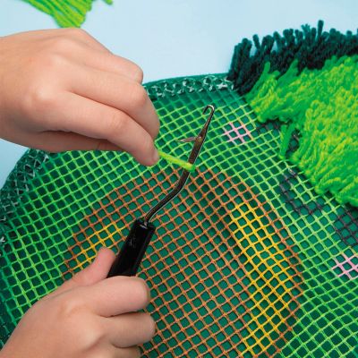 • Complete kit with yarn, canvas, latch hook tool, and instructions
