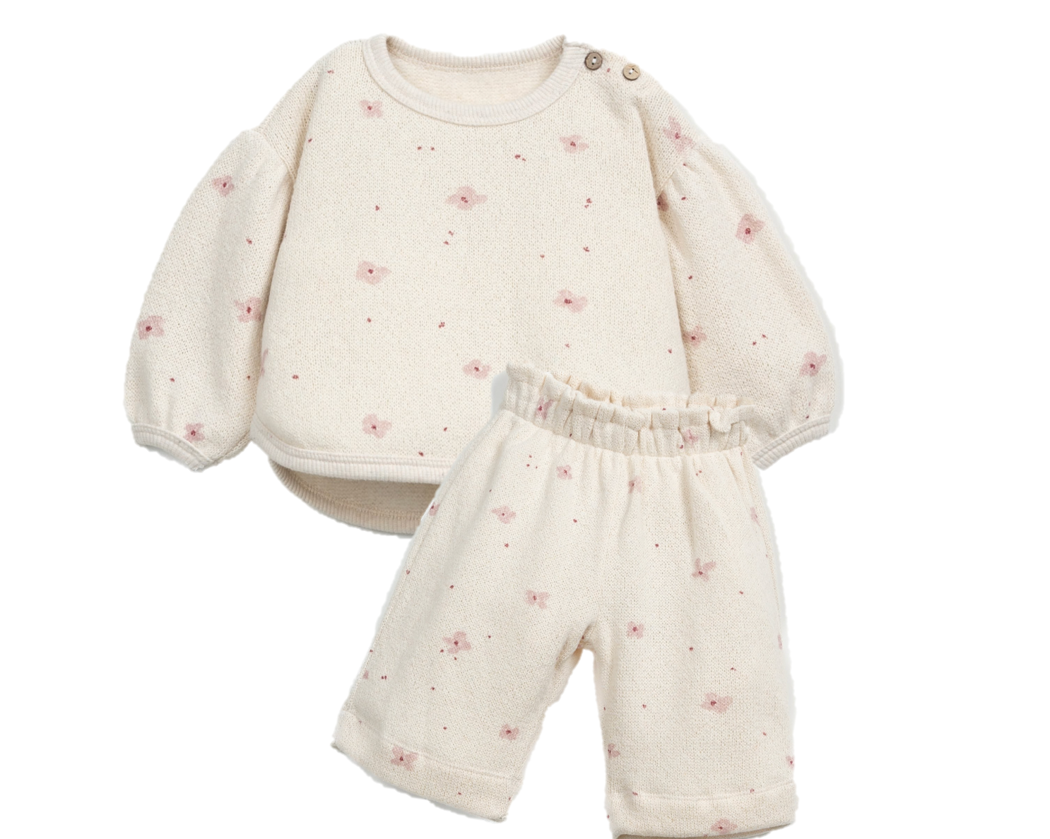 Play Up Printed Jersey Sweater & Trousers (pink flowers)