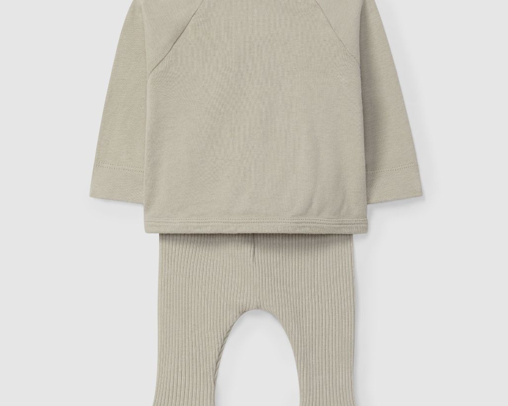 Snug Striped L/S Brushed Jersey Top & Pant (Sand)