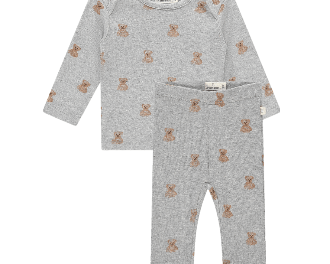 A Tiny Story Lt Gray Melange Tee & Legging (Small Bears)