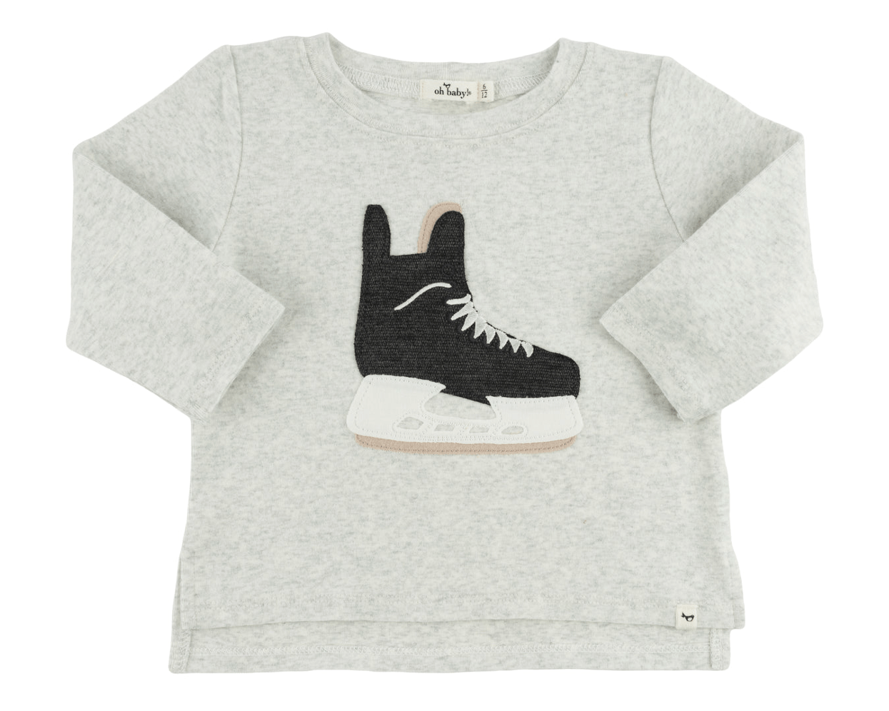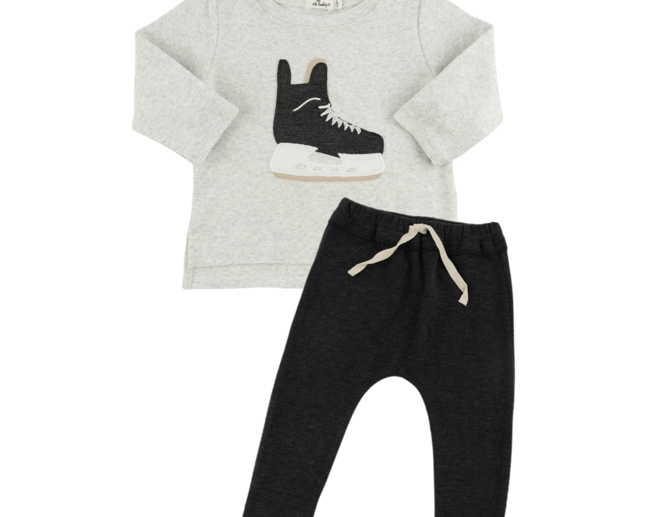 Oh Baby! Hockey Skate Baby Rib LS Raw Edge Tee & Jogger (Heather Gray)