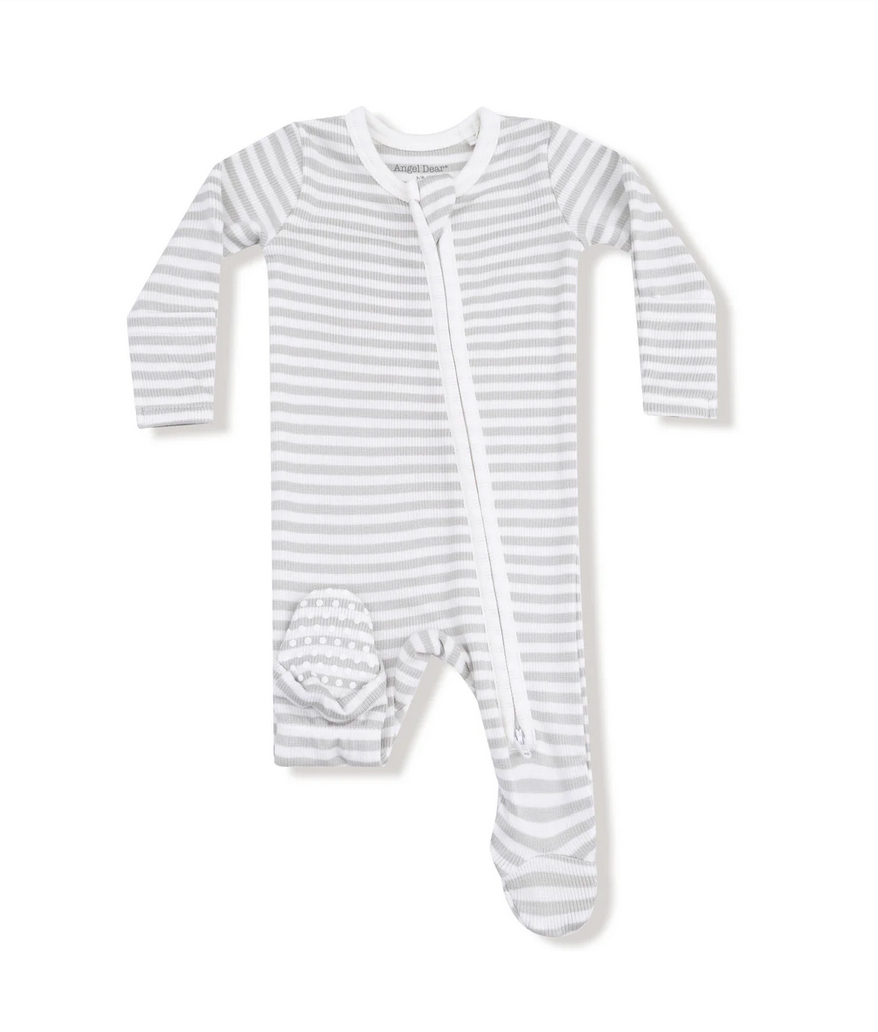 Angel Dear 2 Way Zipper Footie - Mineral Stripe Grey/White