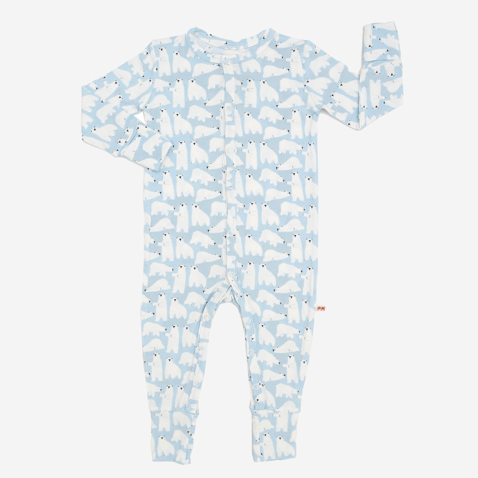 Petite Hailey Bamboo LS Zipper Closure Romper (Blue Bear)