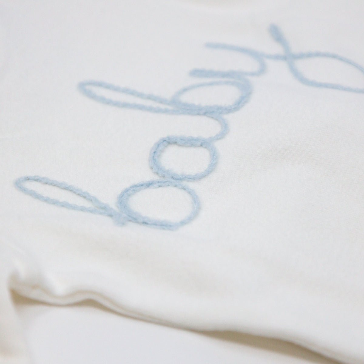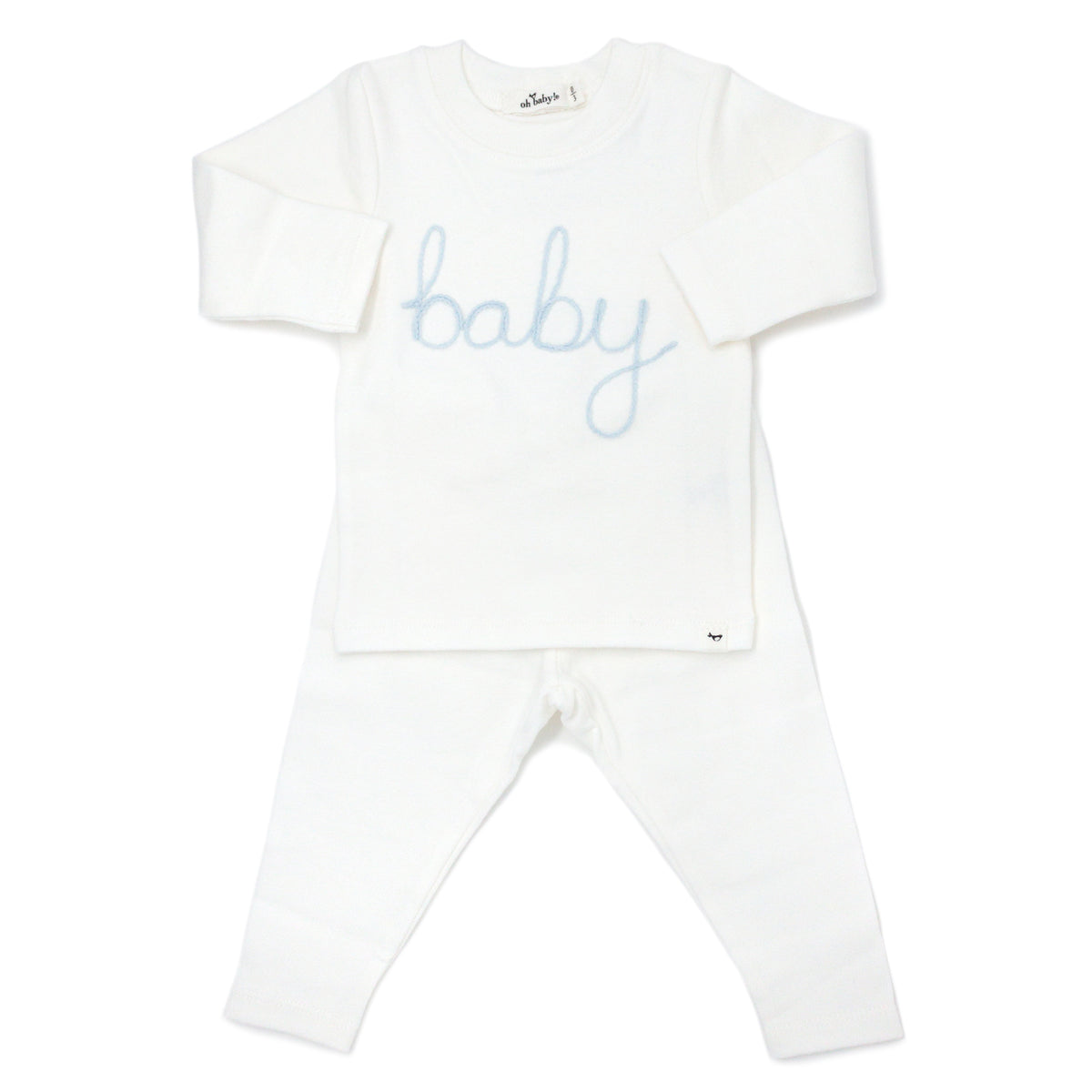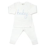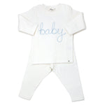 Oh Baby “Baby” Sky Blue Embroidered L/S 2PC Set - Cream
