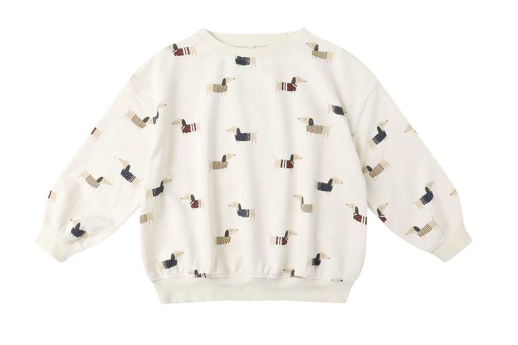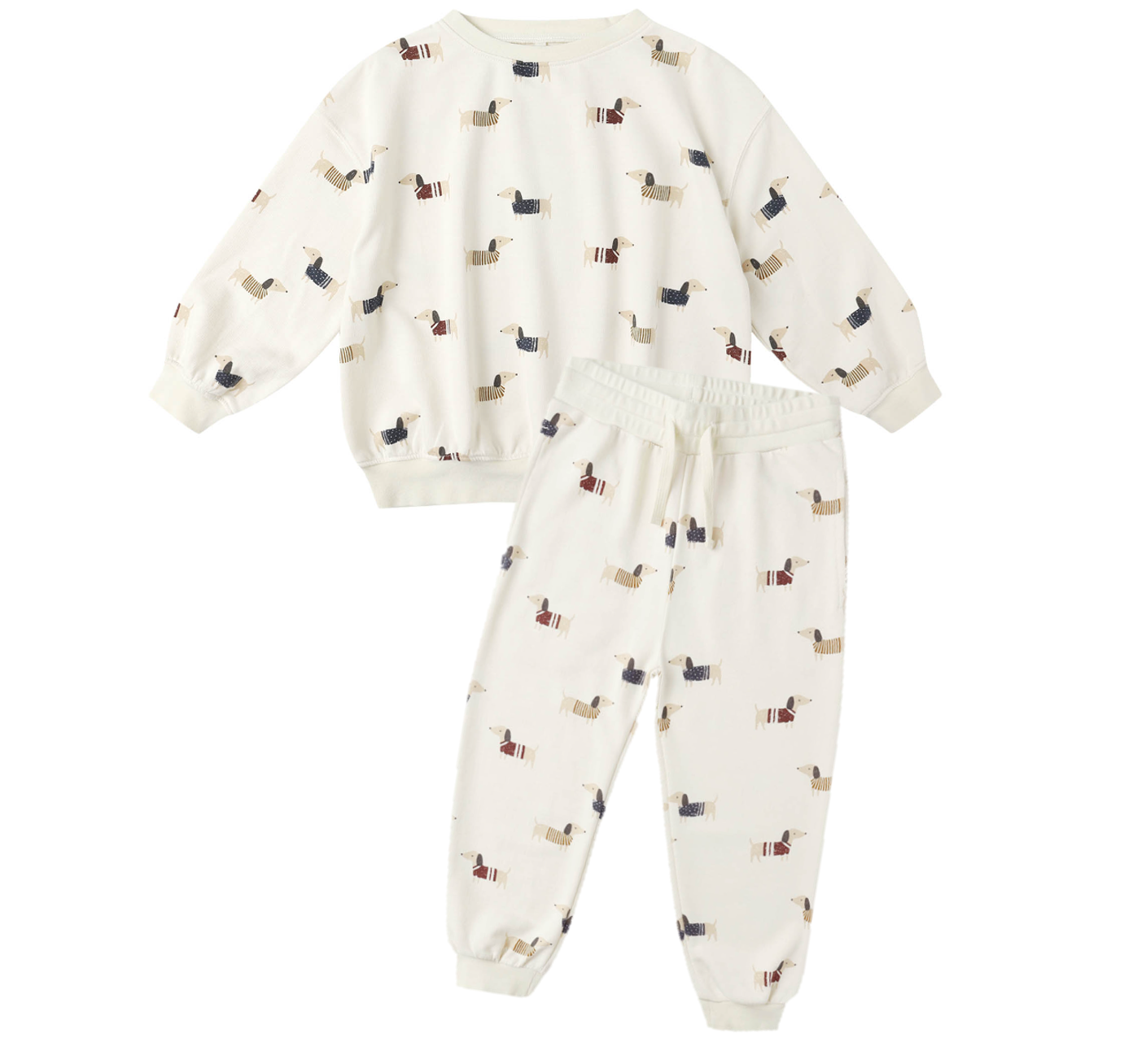 The Rylee & Cru Relaxed Sweatshirt and Pants Set showcases a cute dachshund print—great for easygoing days with a splash of fun! Crafted from 60% cotton and 40% polyester for cozy comfort.