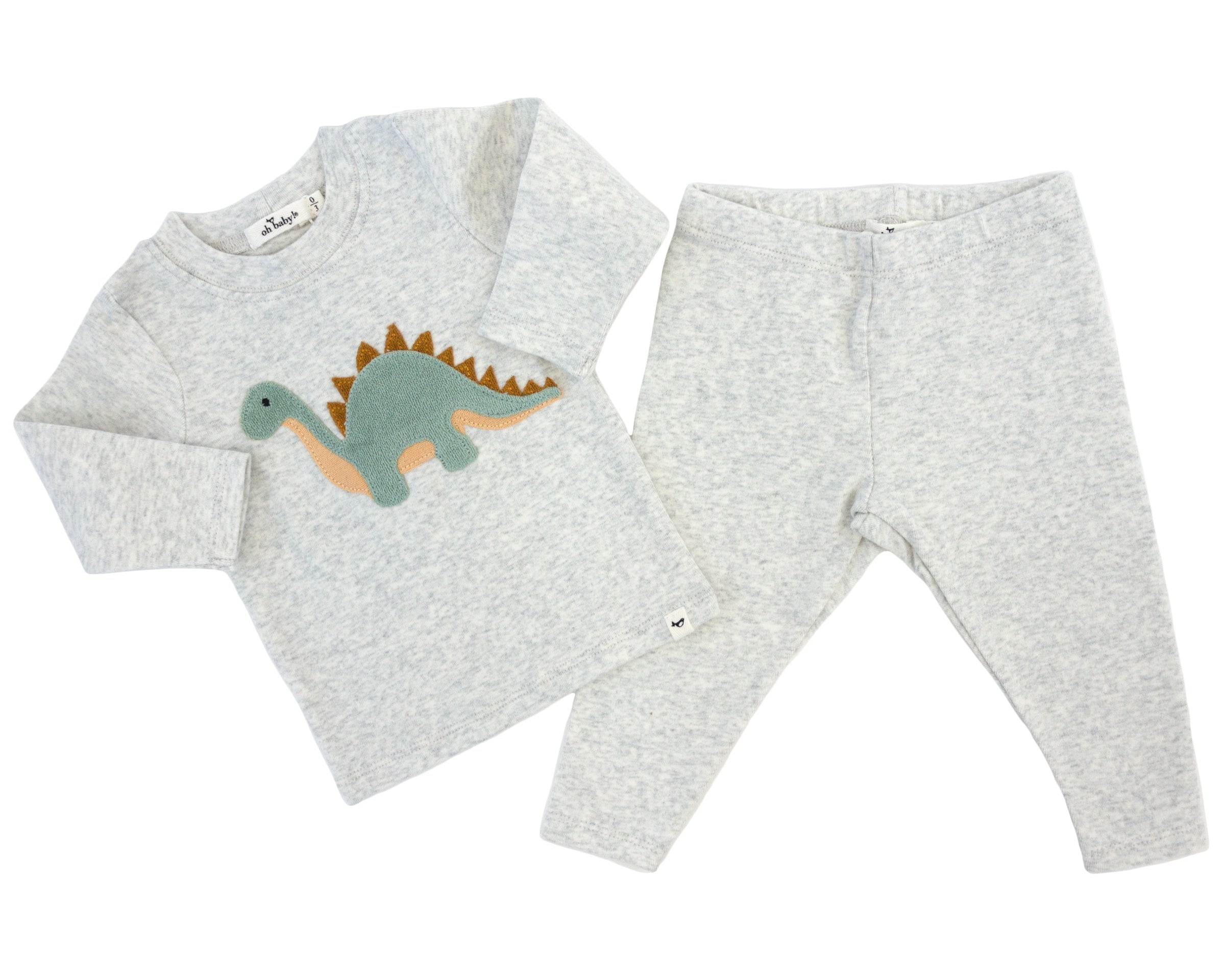 Oh Baby! Dinosaur Terry Applique 2pc Set (Heather Gray)