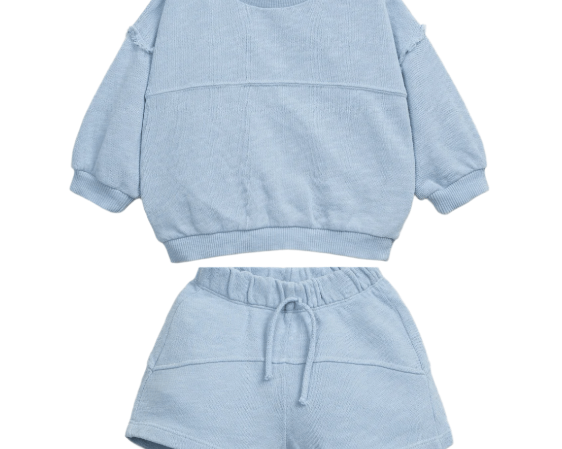 Play Up Oversized Sweatshirt w Buttons Short Set - Rain