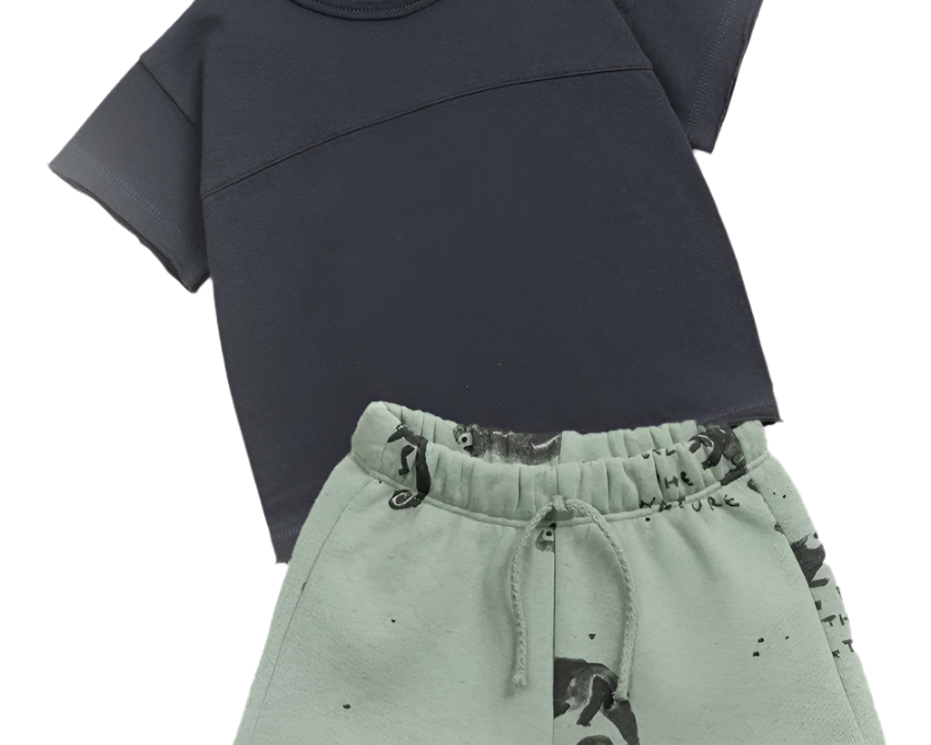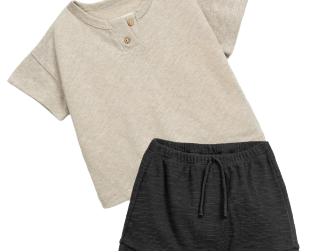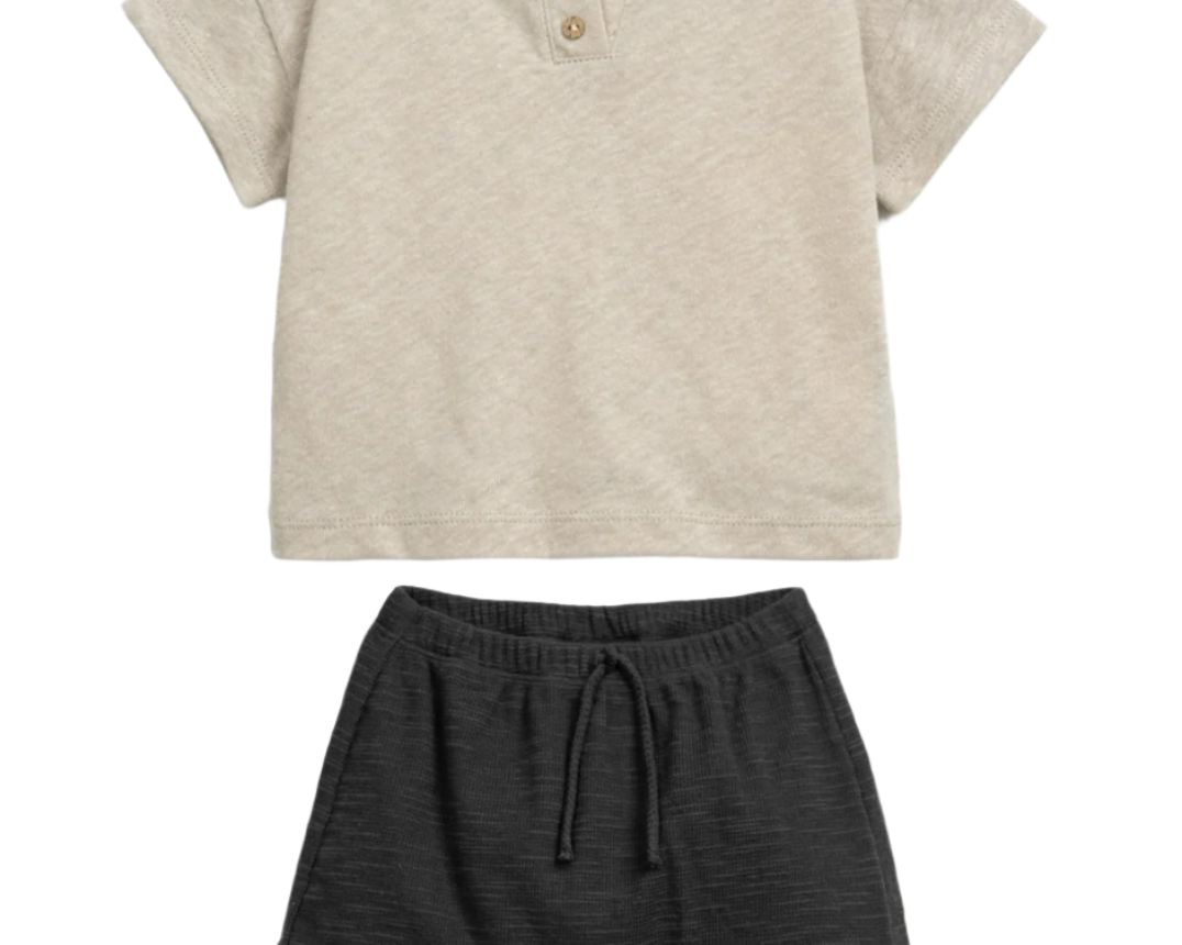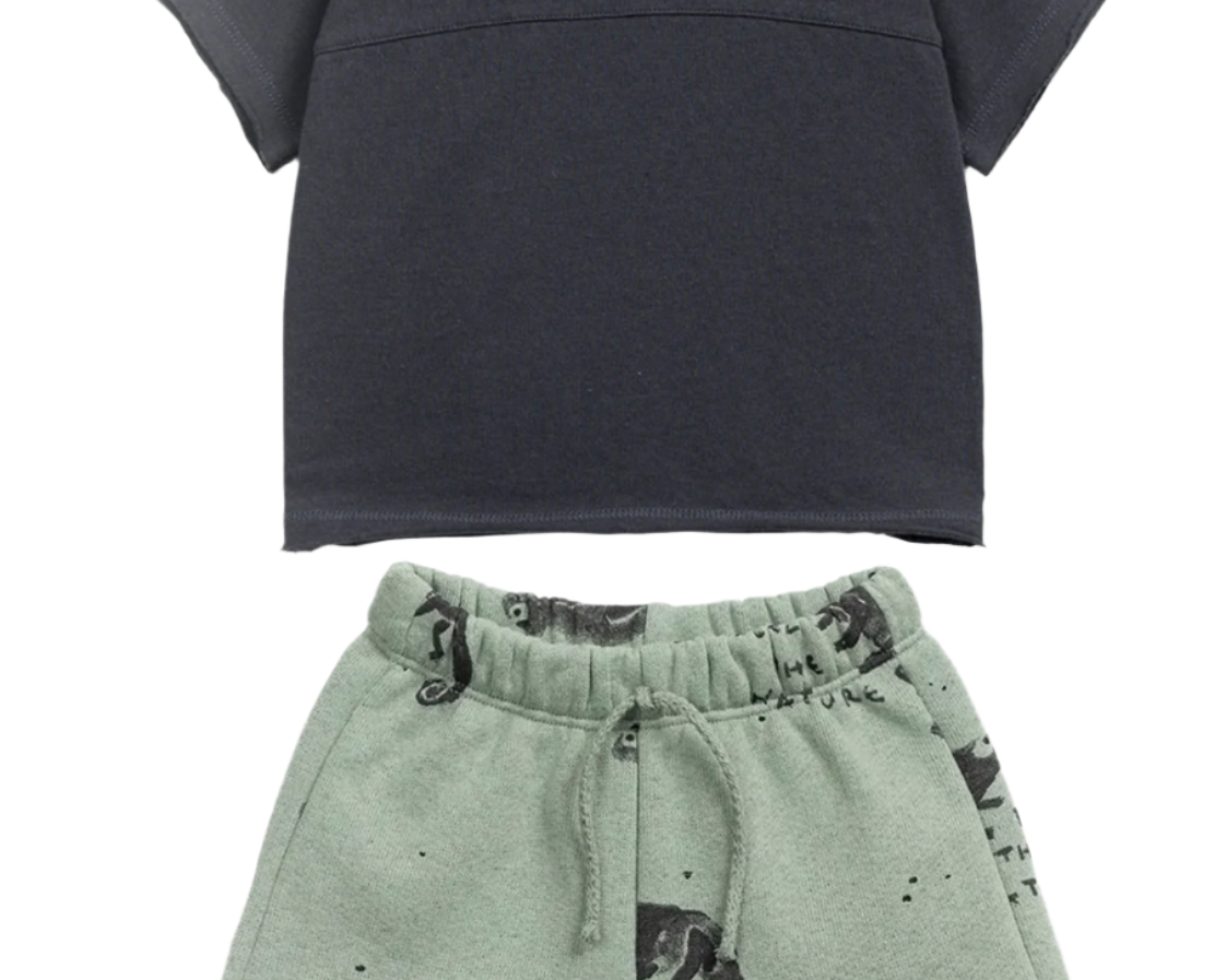 Play Up Cream Jersey T-shirt and Black Fleece Shorts