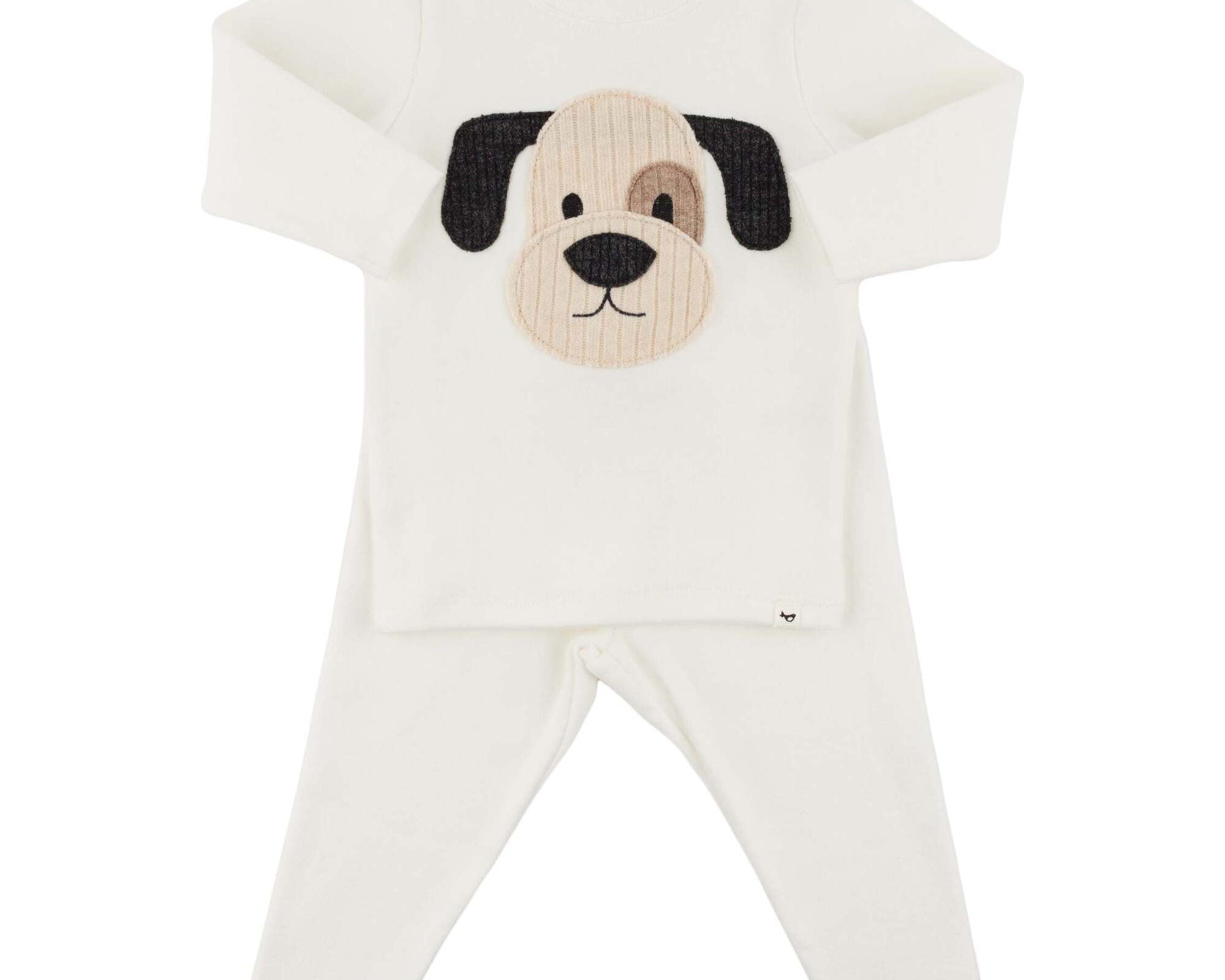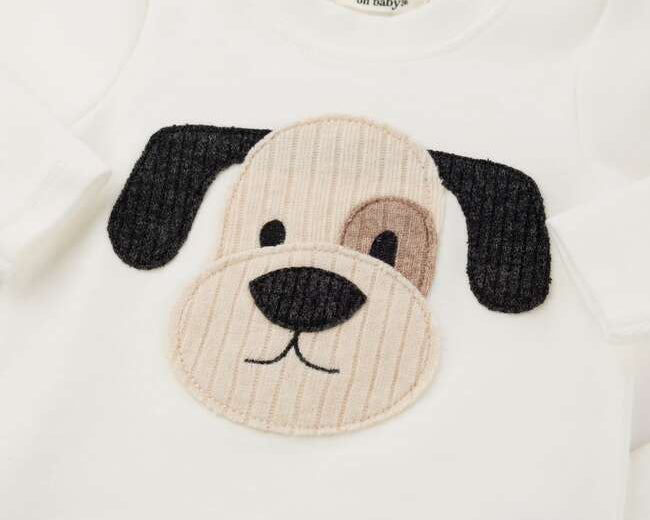 Oh Baby! Puppy Face Applique L/S 2pc Set-Cream