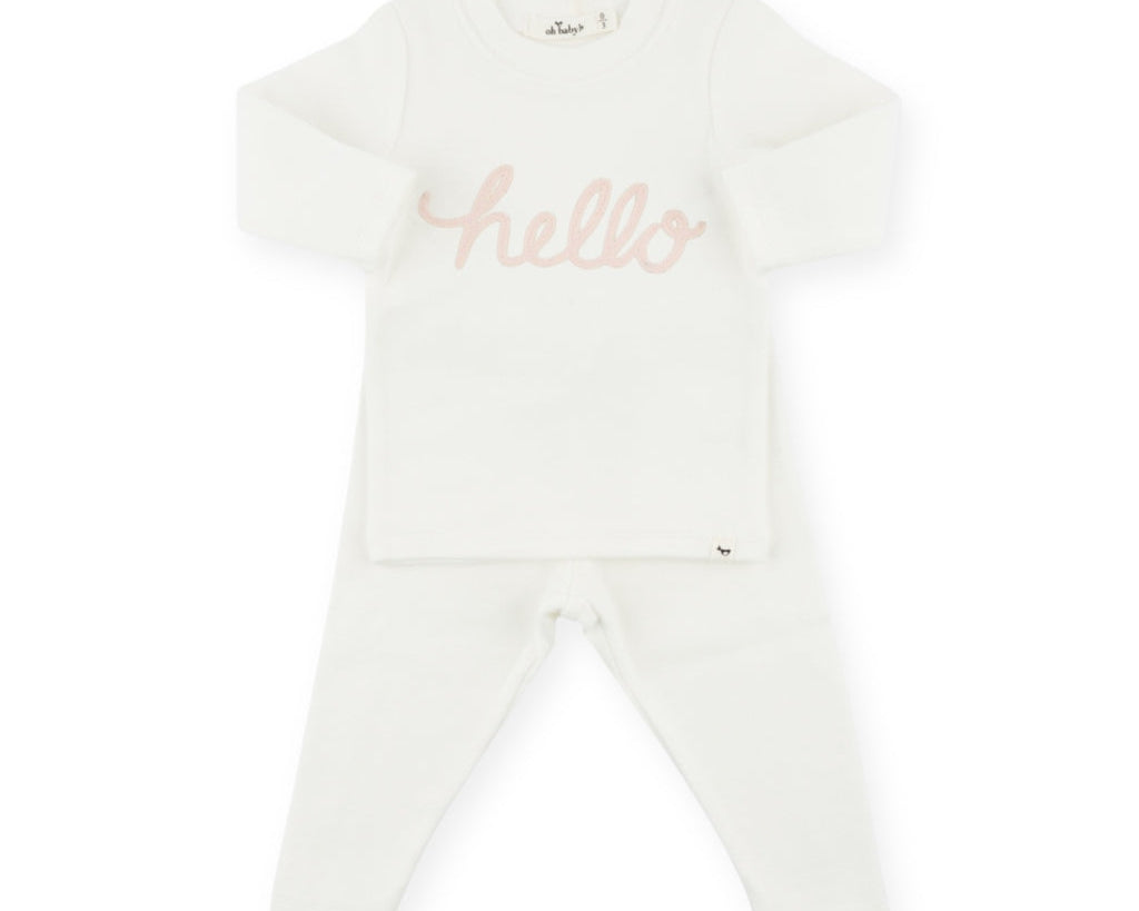 Oh Baby! "hello" 2 pc Set (Pale Pink on Cream)