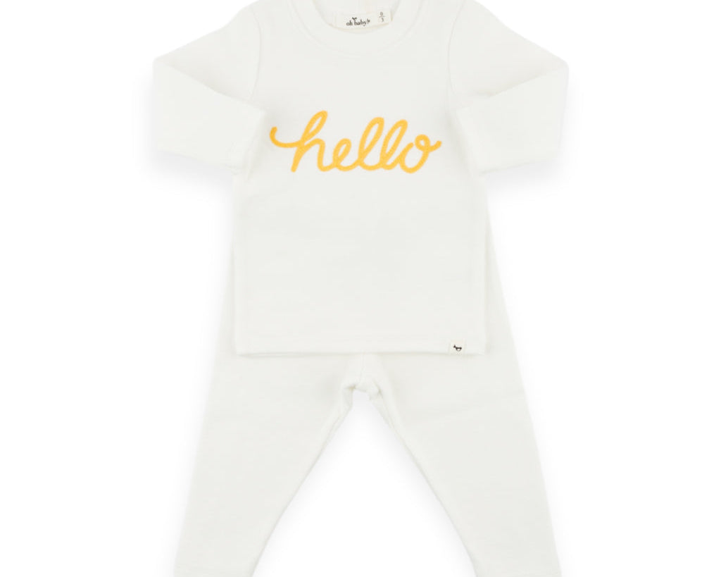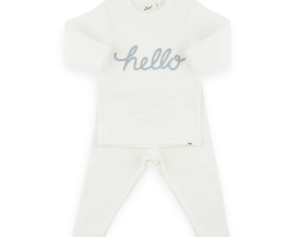 Oh Baby! "hello" 2 pc Set (Fog on Cream)