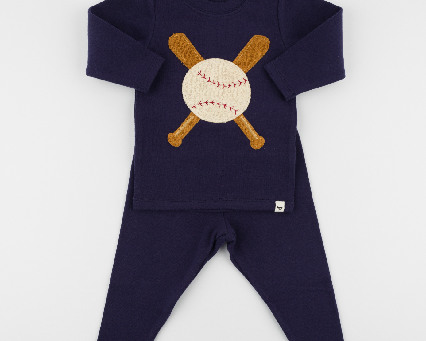 Oh Baby! Terry Baseball L/S 2PC Set-Navy
