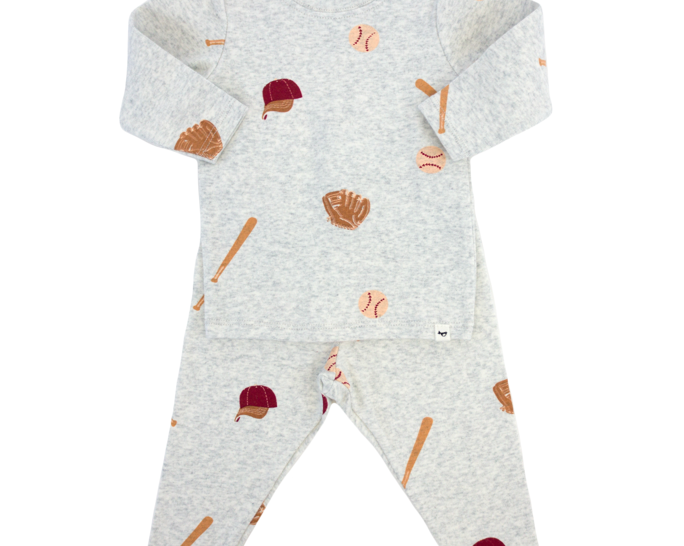 Oh Baby! Baseball Print 2pc Set (Heather Gray)