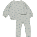 Our Spongy Knit Set features a pullover sweatshirt with balloon sleeves and elasticized hem, and snug leggings with an elastic waist.