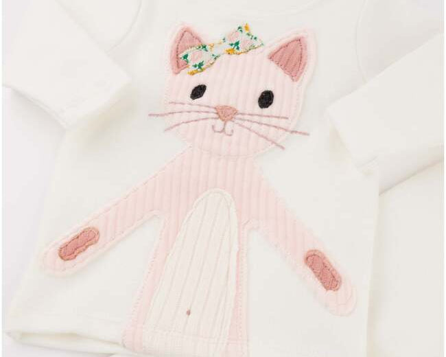 Oh Baby! Quilted Kitty Applique L/S 2pc Set (Cream)