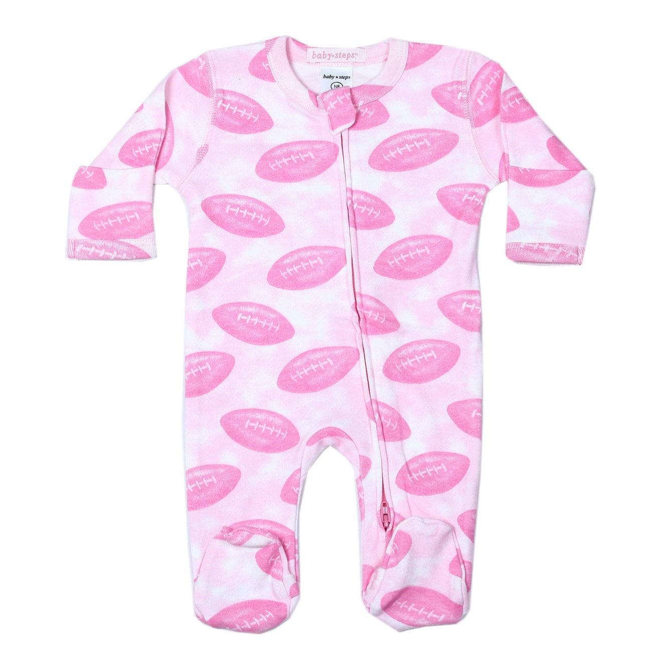 Baby Steps Footballs Pink Baby Zipper Footie