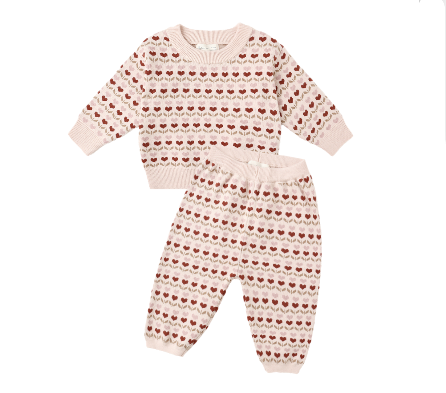 Rylee + Cru Knit Sweater & Pant Set - Ruby Hearts (Petal)
