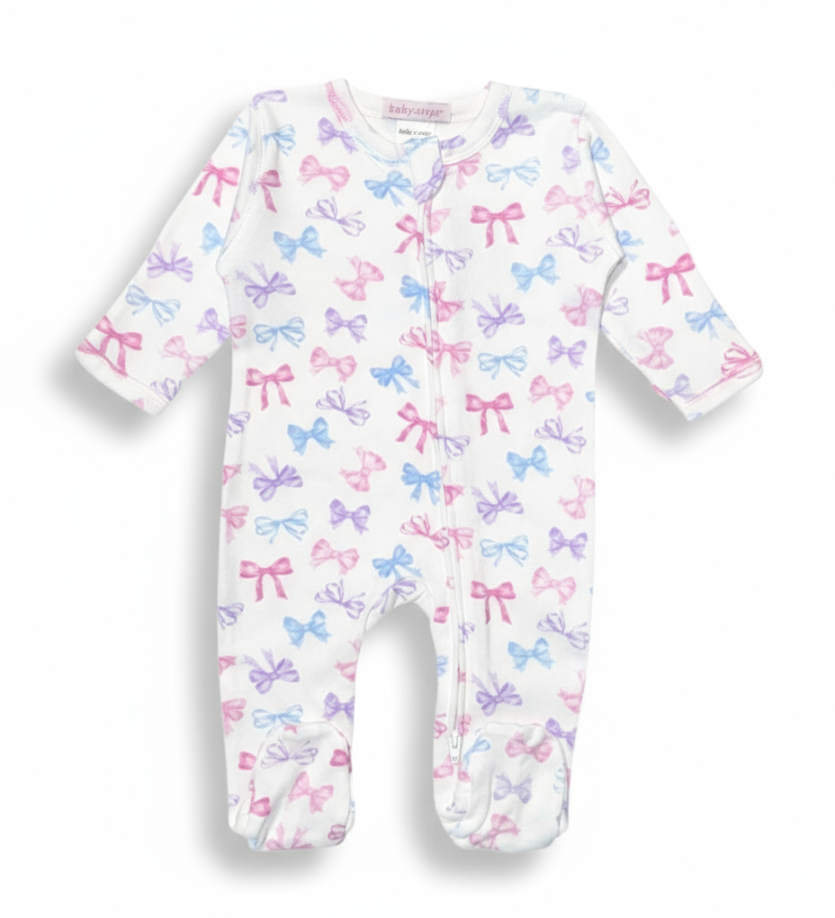 Baby Steps Tossed Bow Baby Zipper Footie