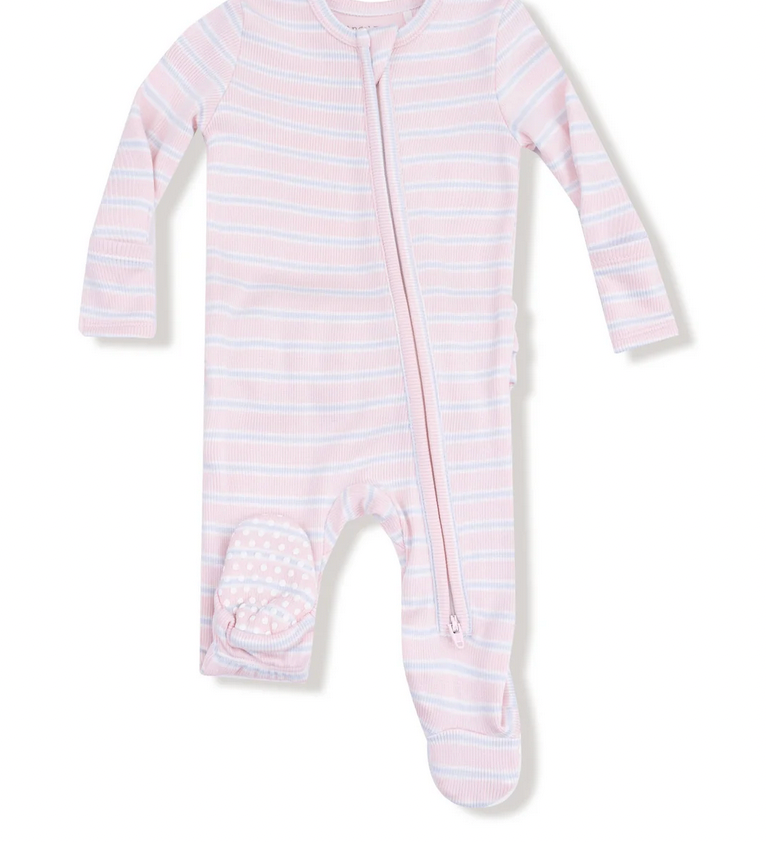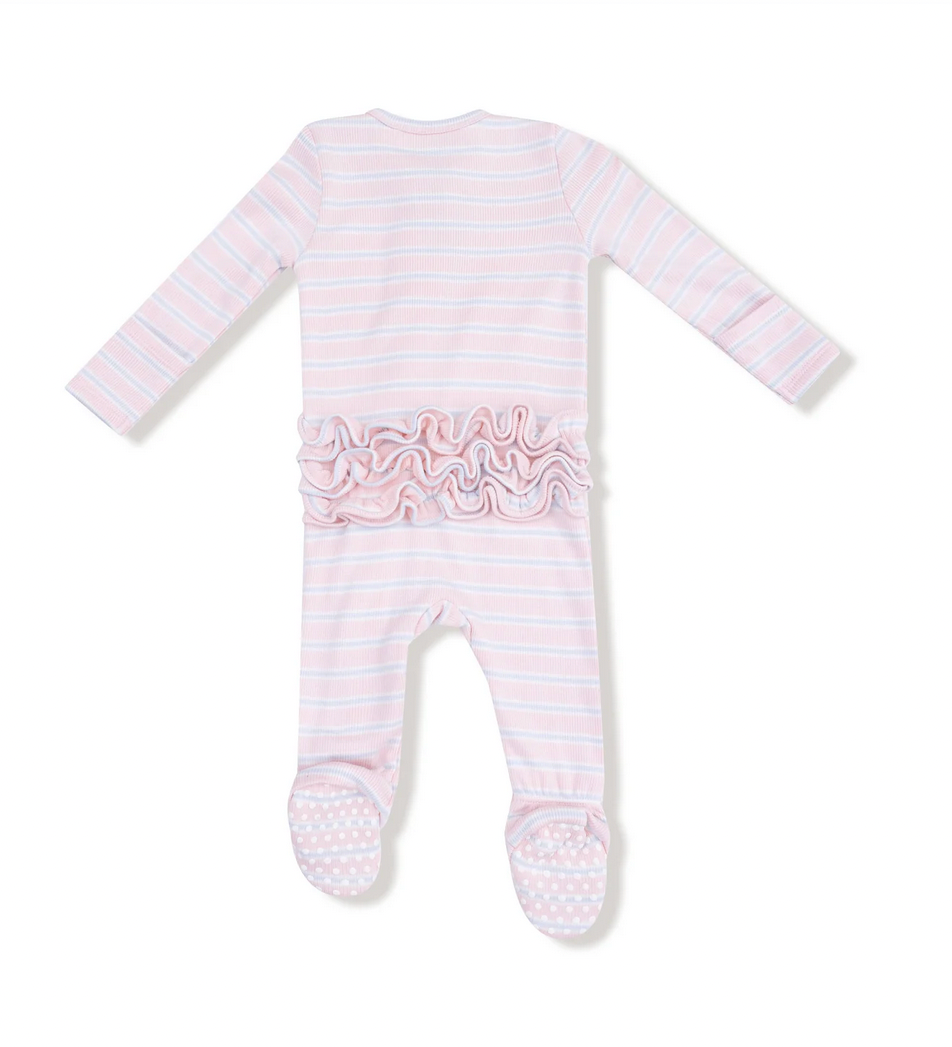 Angel Dear 2 Way Zipper Ruffle Back Footie - Multi Stripe - Pink