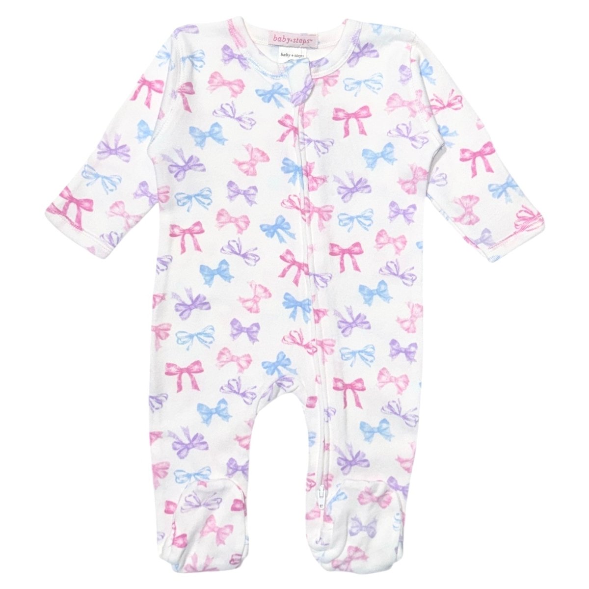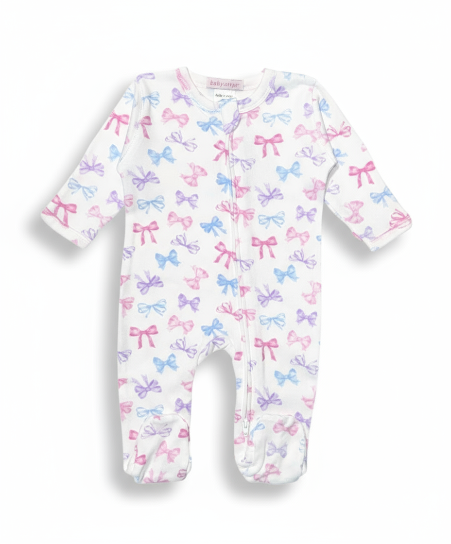 Lovingly made with a soft inner placket and safety flap to keep baby’s skin cozy and protected. This playful footie boasts a handy two-way zipper for quick diaper changes and mitten cuffs to keep little scratch marks away. Style #: F2437 in a vibrant multi print from the Baby Steps collection.