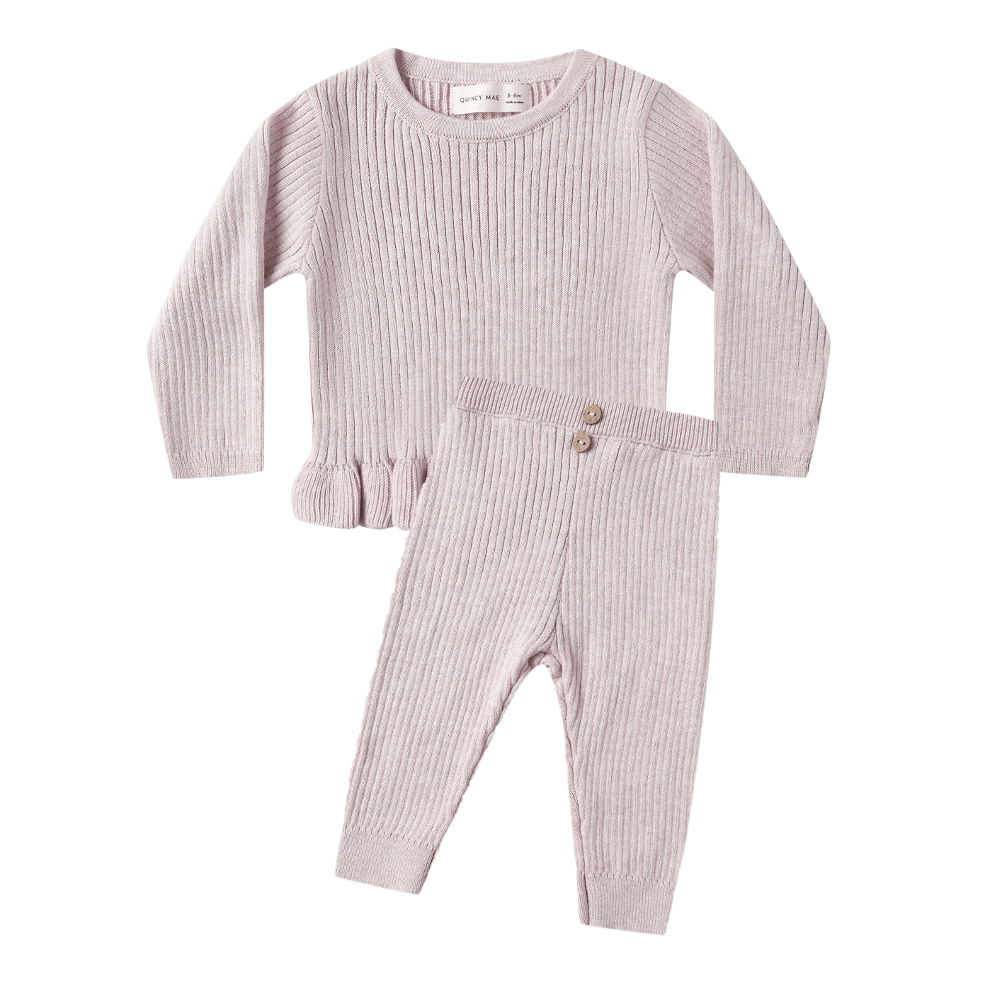 Quincy Mae Ribbed Knit Peplum Top & Legging Set (Lilac)