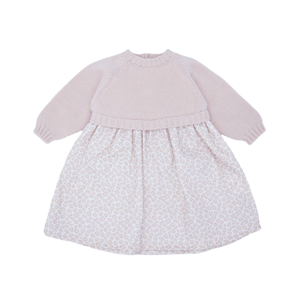 Li & Me Aila Knit Woven Dress (Light Leopard Pink)