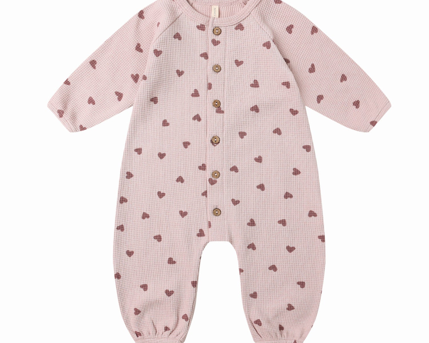 Quincy Mae Waffle Long Sleeve Jumpsuit (Hearts)