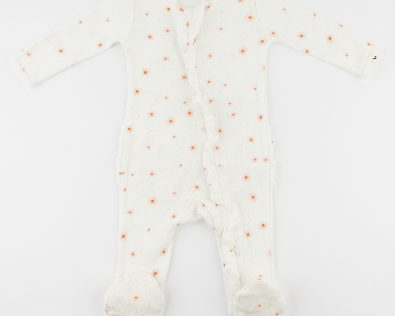 Oh Baby! Twinkle Mini Daisies Zip Footie w/ Ruffles