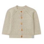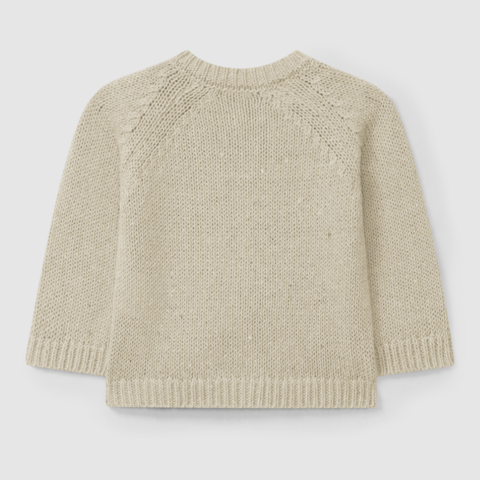 Cardigan knitted with 62% to 75% recycled cotton. Piece with handmade effect fastens with wooden buttons along the entire length. Cotton from end-of-life pieces from all over the world.