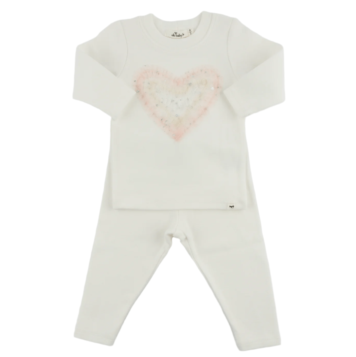 Oh Baby! Ruffle Heart Pink Silver Tulle 2pc Set