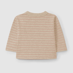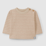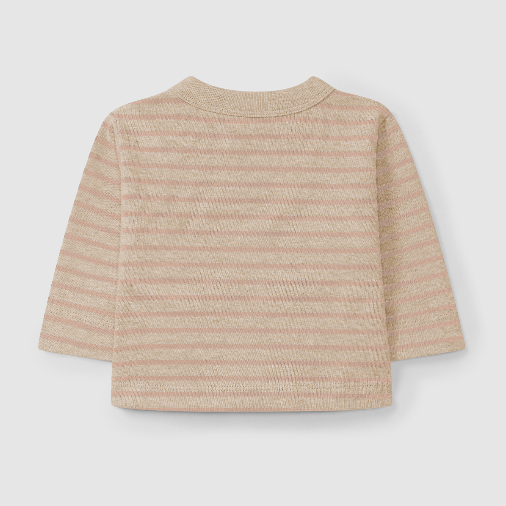 Striped print longsleeve in 100% soft brushed cotton jersey. Fastens with wooden buttons on the shoulder up to 24 months.