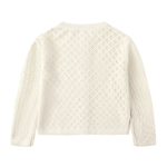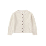 This darling cardigan showcases a beautiful knit design and coconut buttons for an extra sweet look.