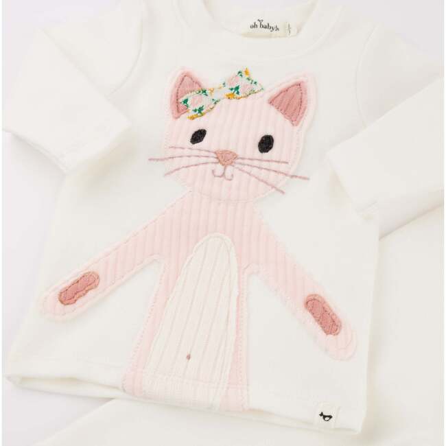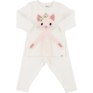 Oh Baby! Quilted Kitty Applique L/S 2pc Set (Cream)