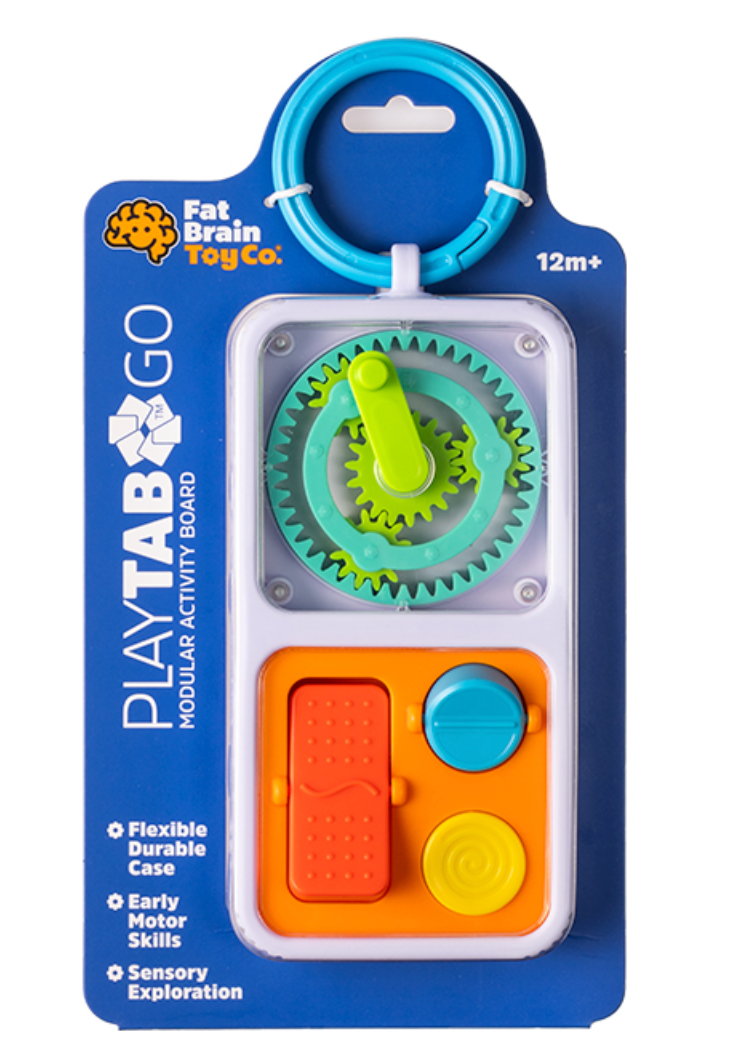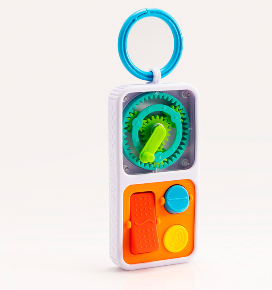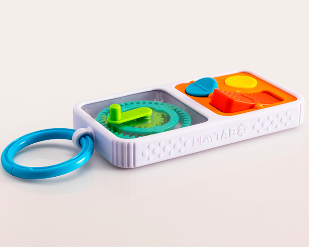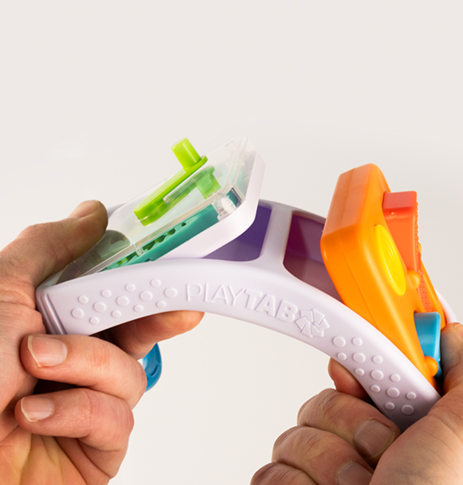 The two included sensory tiles can be popped in and out of the flexible, durable case, and you can switch them out for any other PlayTab tiles.