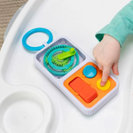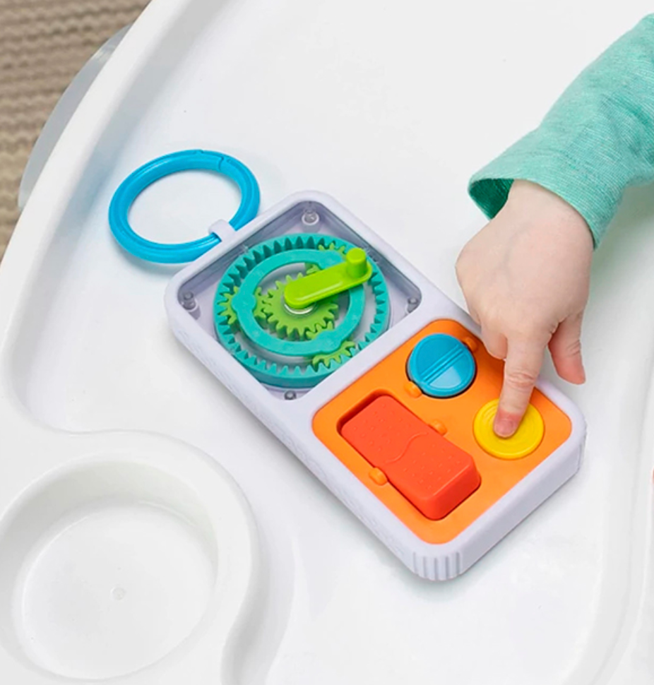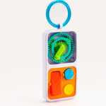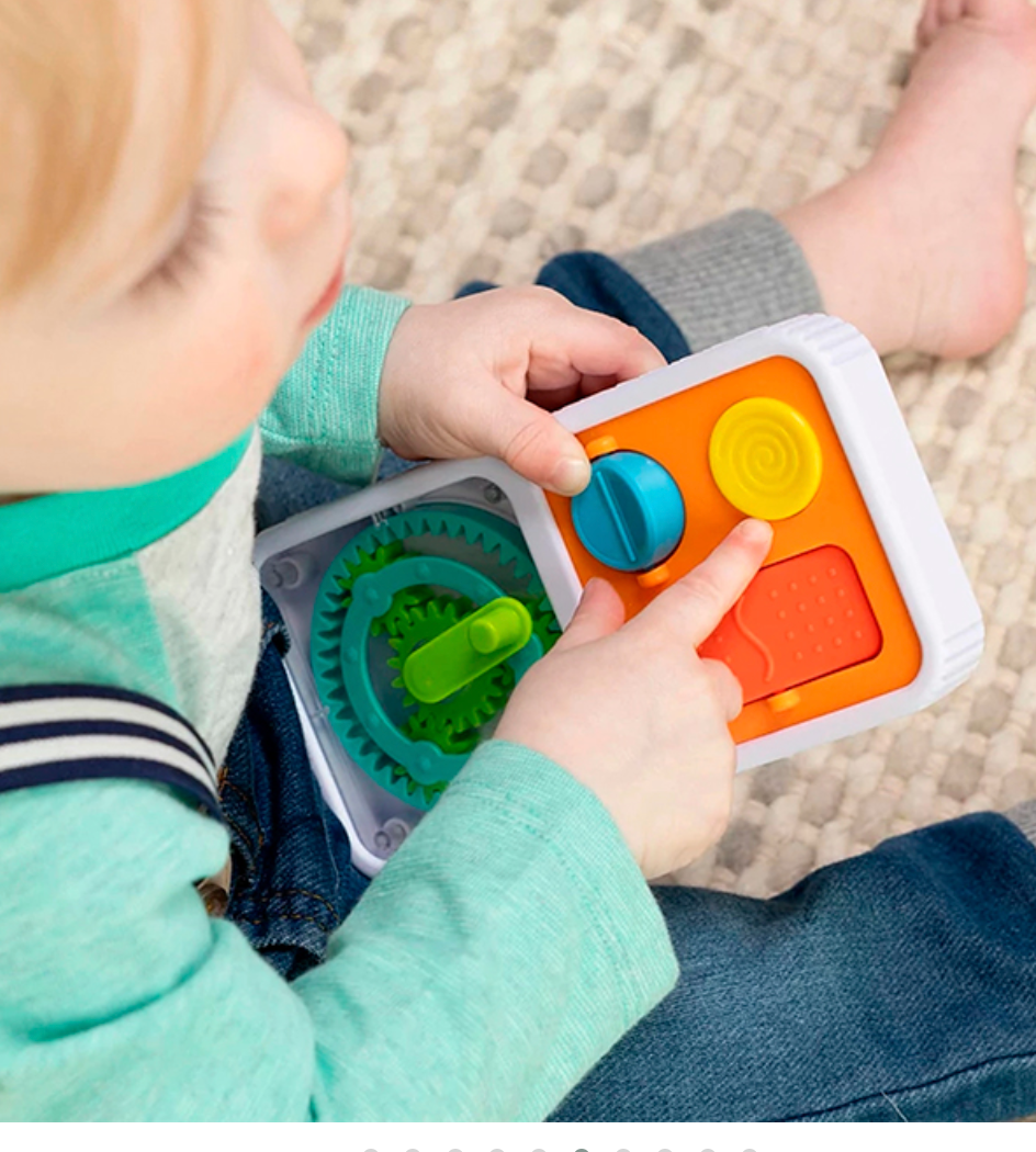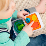 - Encourages sensory learning, fine motor skills, cause-effect learning