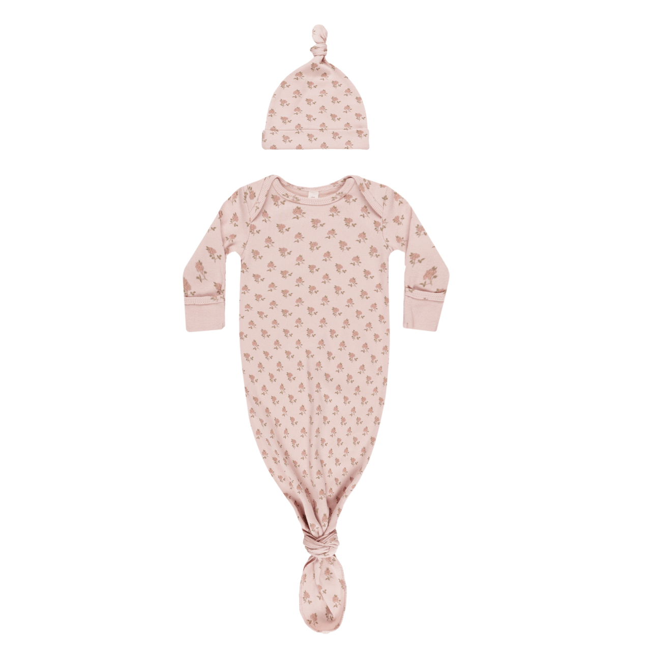 Quincy Mae Knotted Baby Gown & Hat Set (Roses)