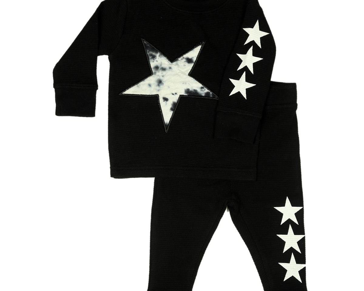 Little Mish Black Tie Dye Thermal Shirt and Pants Set