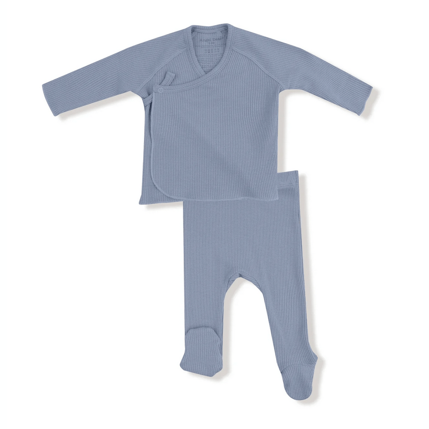 Angel Dear Waffle 2 Piece Long Sleeve Kimono Footed Pant - Light Bliue