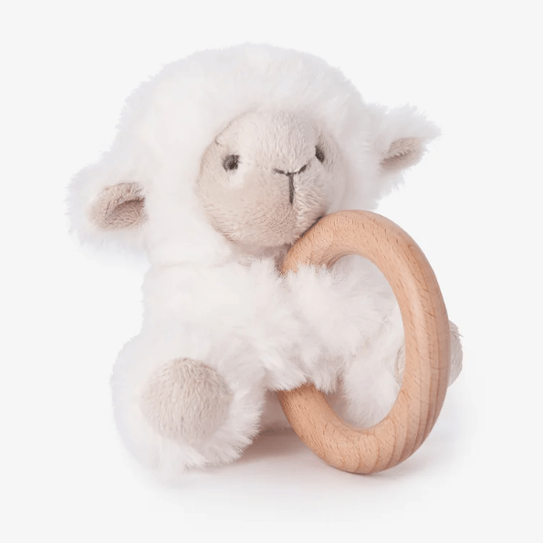 Elegant Baby Plush Lamb Wooden Ring Rattle