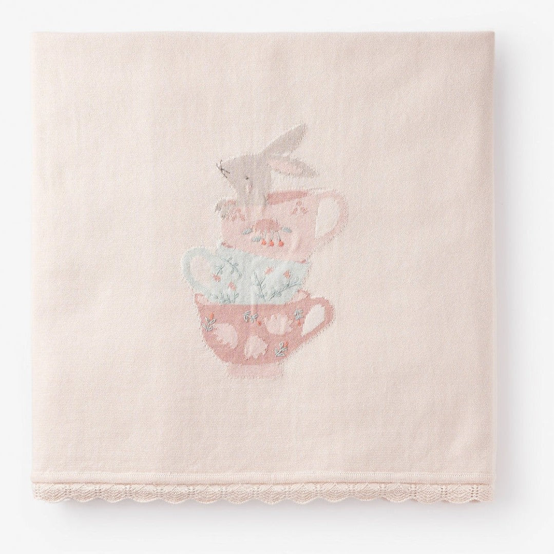 Elegant Baby 30X40 Blanket - Teacup Party Knit Hand Embroidered Blanket