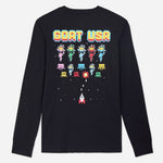 Level up your style with the Retro Gamer/Invaders Long Sleeve T-Shirt. Featuring a retro video game–inspired graphic, this tee brings a playful throwback vibe with a GOAT USA twist. Designed with a cotton-poly jersey and our heavenly soft wash, it’s the perfect balance of softness, durability, and comfort. Perfect for gamers, nostalgic fans, or anyone ready to hit “start” on bold style.