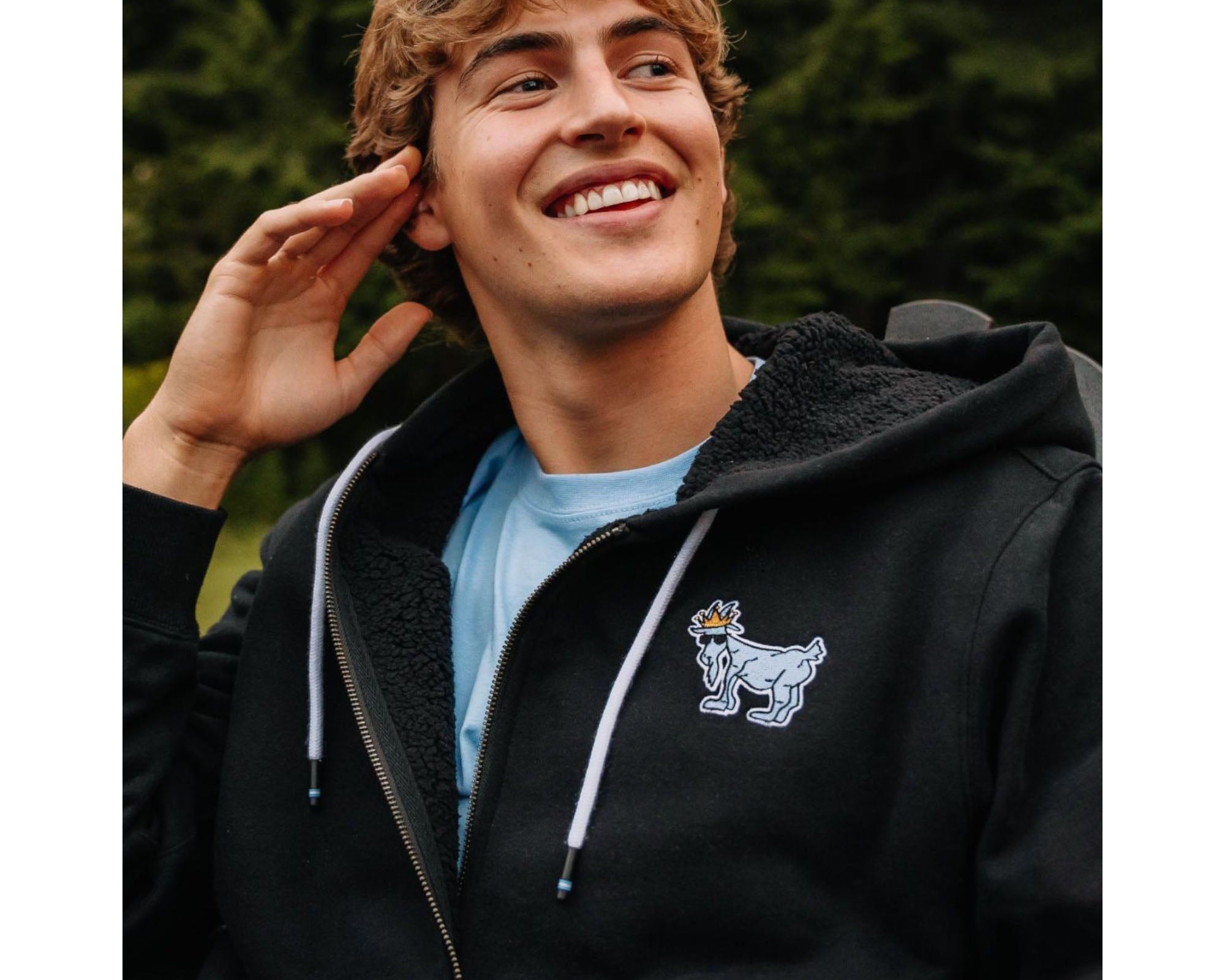 GOAT USA Sherpa-Lined Full-Zip Hooded Sweatshirt - Black