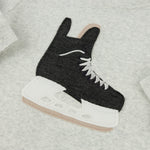 This playful Heather Gray long-sleeve tee features a baby rib texture with raw edge details and a fun hockey skate design, perfect for little sporty fashion lovers.