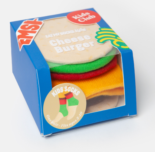 These delicious socks, shaped like everyone’s favorite treat, are perfect for adding a tasty twist to any outfit. Let your little ones show off their love for cheeseburgers with every step they take. Yum! Unisex - Fits ages 5-10 years old- Size 28-35.